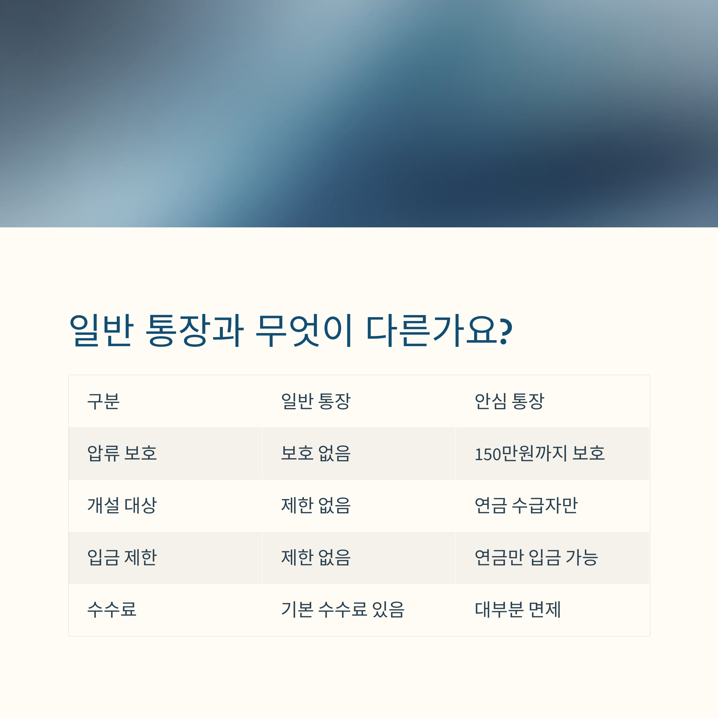 정리하자면, 안심통장은 ‘불편함’을 감수하면서도 안전성을 높이기 위한 특별한 계좌라는 점에서 일반 통장과 확실히 구분돼요. 연금 수급용으로만 사용하는 게 가장 이상적이며, 일상생활용 통장과는 별도로 운용하는 것이 좋아요.