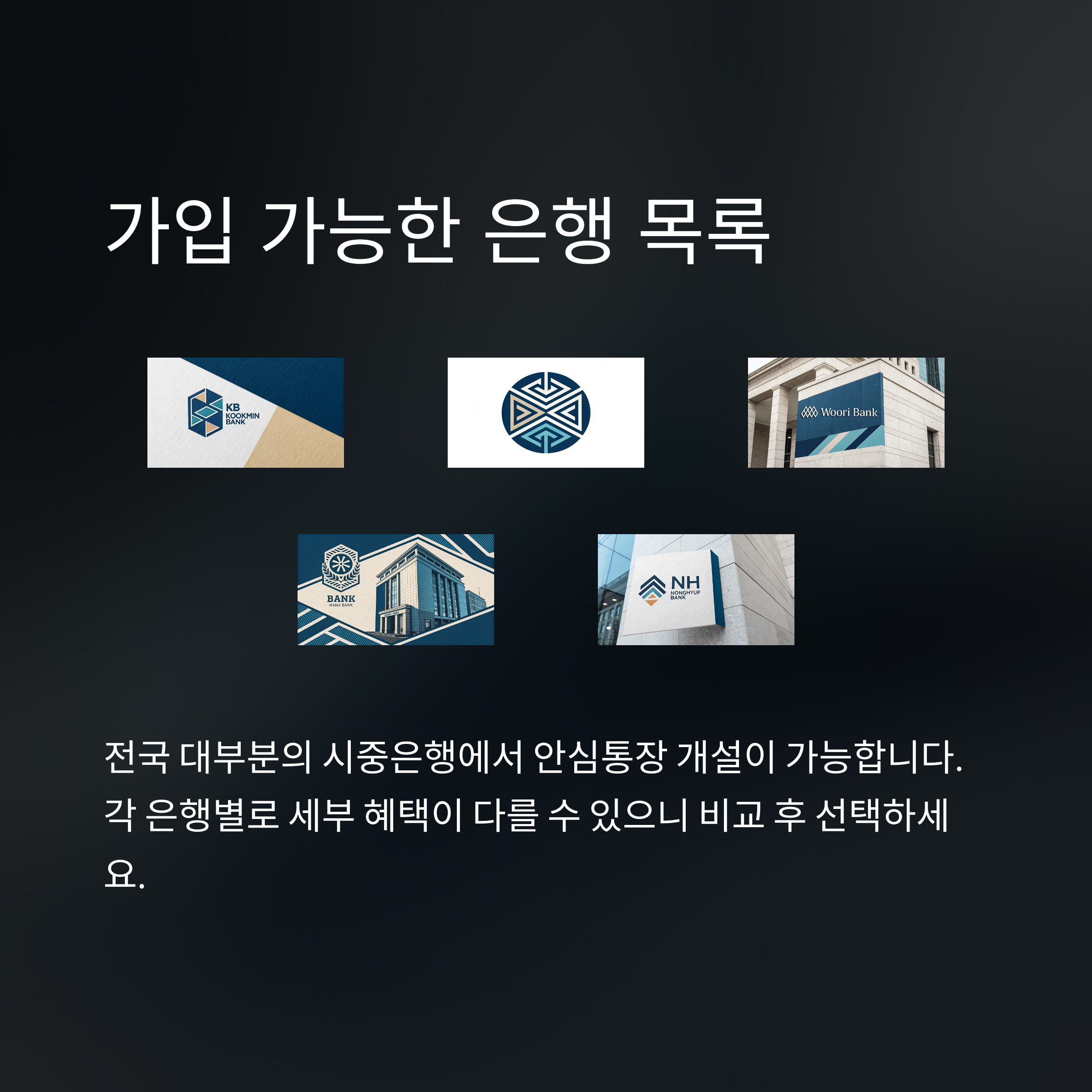 안심통장 개설 가능 은행 리스트