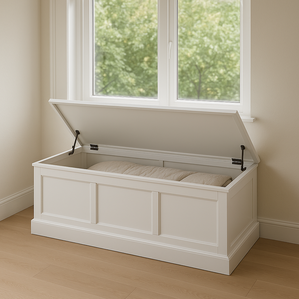 - 벤치형 수납장: 오래된 장롱 리폼하여 앉을 수 있는 벤치형 수납장으로 변신 (현관이나 창가에 유용)