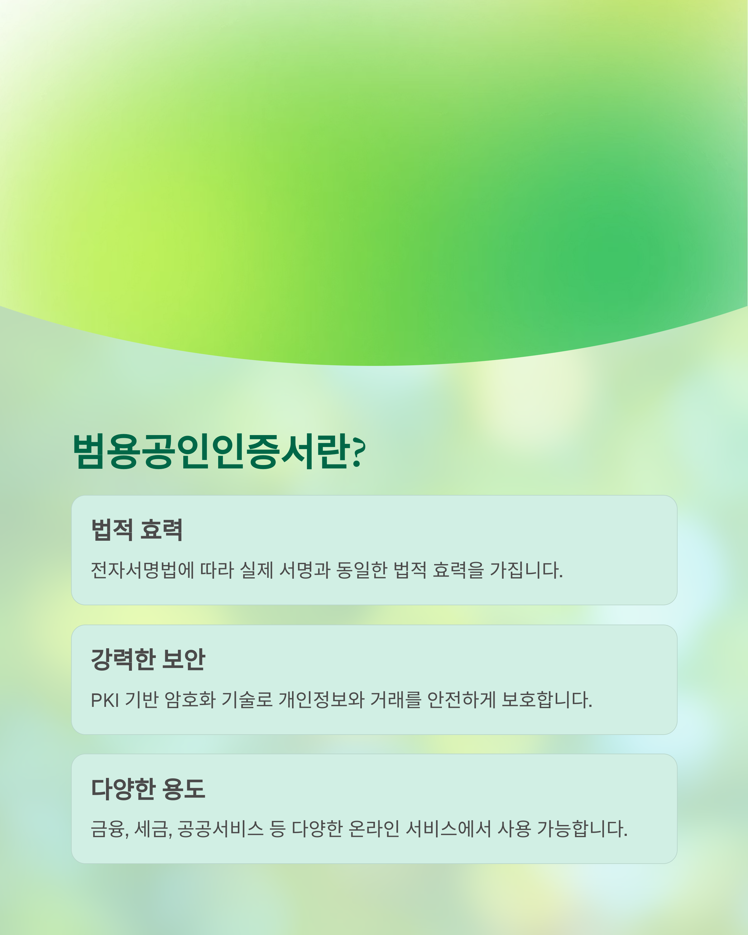 범용공인인증서는 일상생활 속 다양한 전자서명 및 본인인증에 사용되는 디지털 신분증 같은 존재예요. 특히 인터넷 뱅킹, 온라인 민원, 공공기관 이용 등 여러 분야에서 필요한 만큼 많은 사람들이 필수로 준비하는 인증서랍니다.