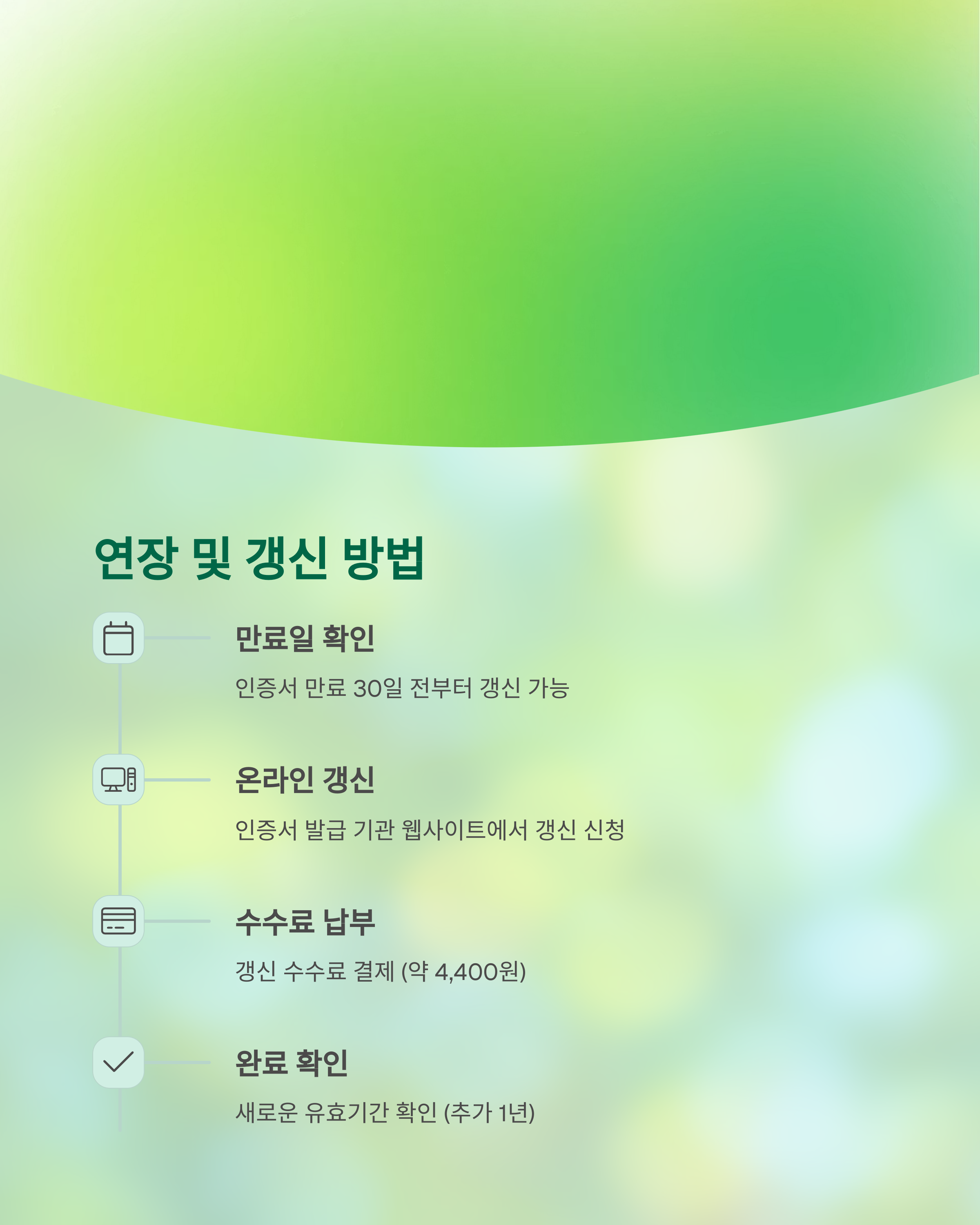 | 갱신 경로 | PC/모바일 인증기관 홈페이지 또는 앱 |