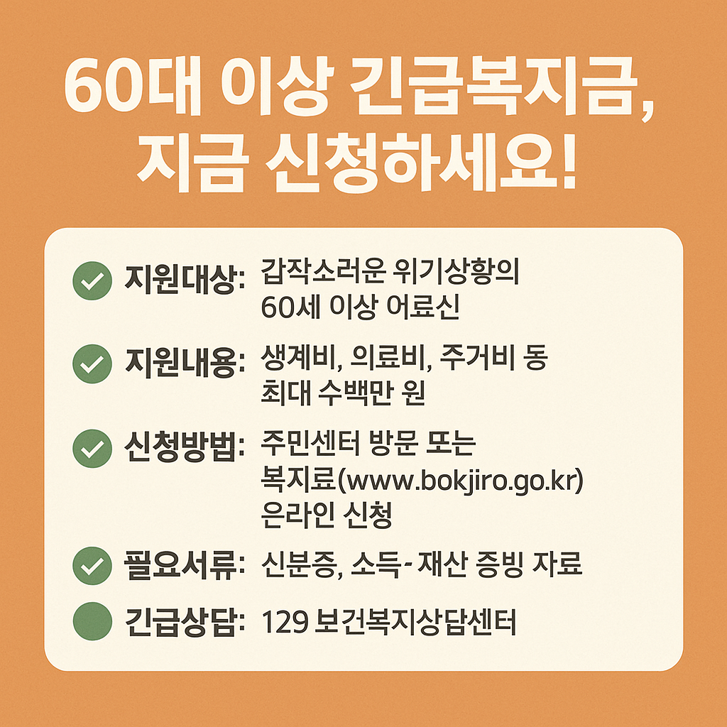 🎯 60대 이상 긴급복지금 신청 조건 한눈에 보기