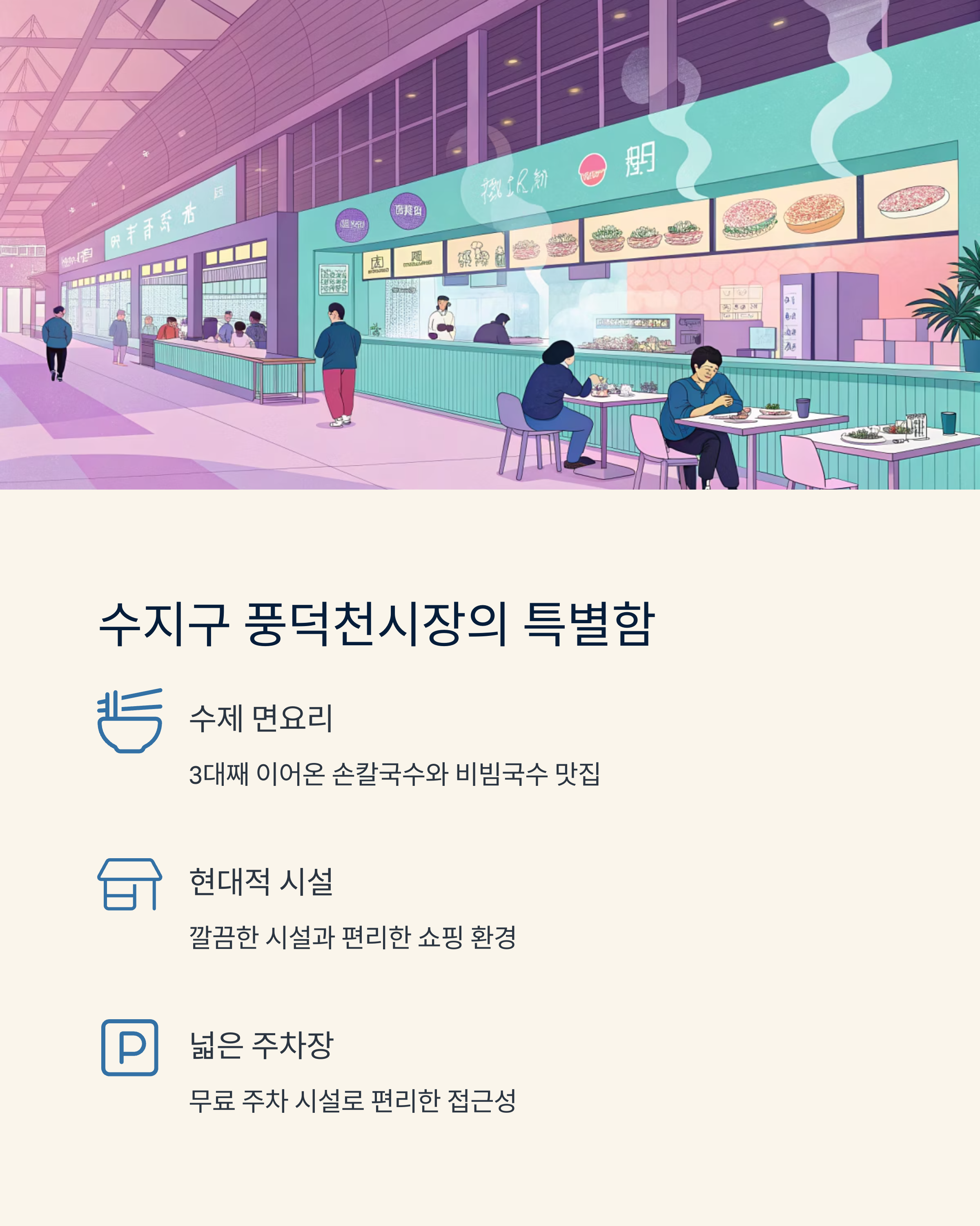 풍덕천시장은 용인시 수지구 중심에 자리한 작지만 따뜻한 분위기의 전통시장이에요. 아파트 단지와 상업시설 사이에 위치해 있어서 지역 주민들의 ‘동네 마트’ 같은 느낌을 주는 곳이죠. 평소 장 보러 가는 엄마 손잡고 따라가던 어린 시절이 떠오를 만큼 정감 넘치는 공간이에요.
