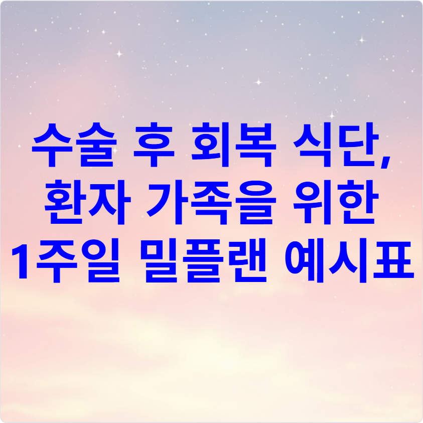 이 글은 일반적인 건강정보를 제공하기 위한 목적으로 작성되었으며, 개인의 건강 상태나 수술 종류에 따라 차이가 있을 수 있어요. 정확한 식단은 반드시 주치의 또는 영양사와 상담 후 결정해 주세요