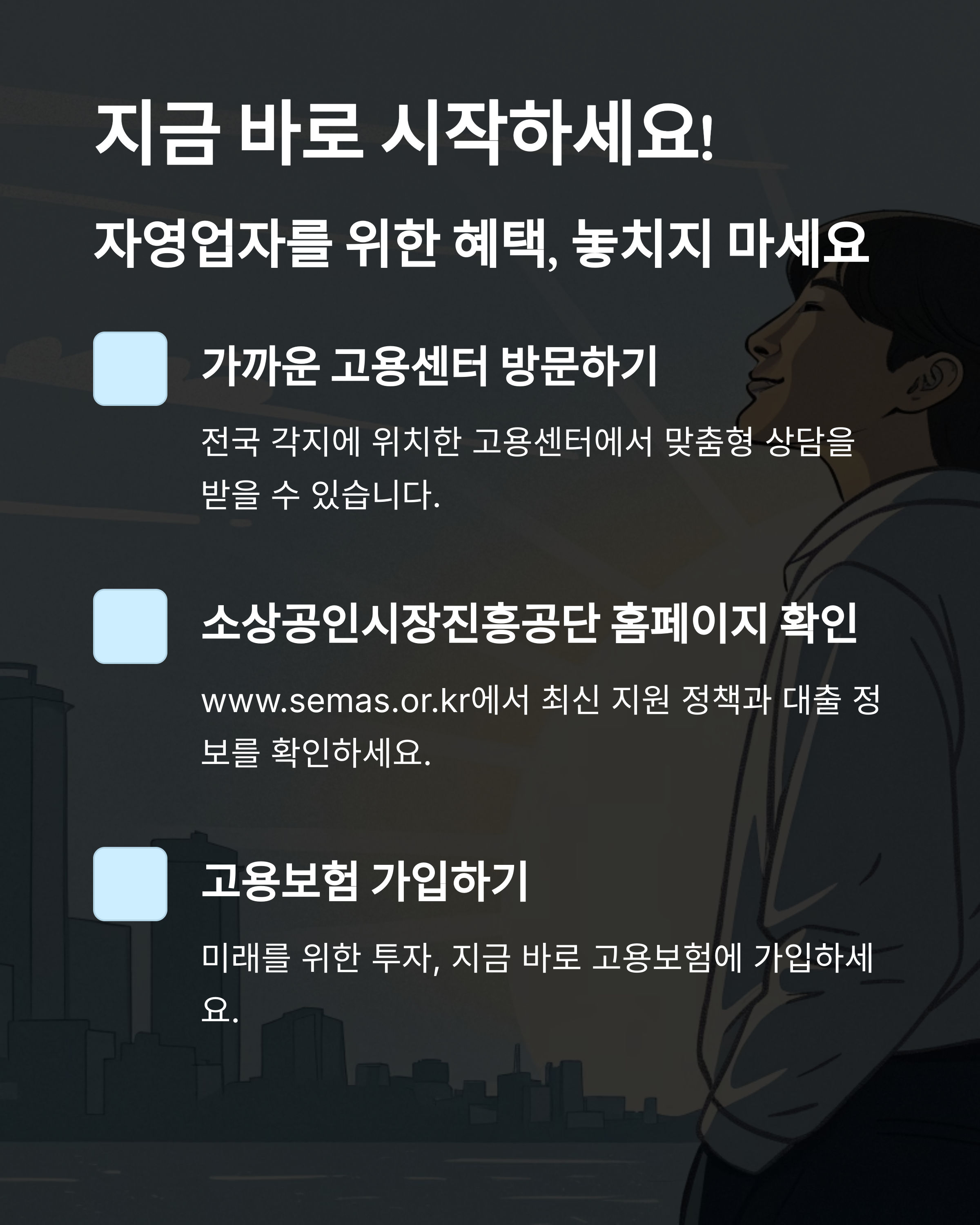 특히 최근 몇 년간 정부는 자영업자를 위한 제도를 꾸준히 확대 중이에요. 실업급여, 재기 지원, 정책 대출, 세제 혜택까지. 10년 전과는 비교할 수 없을 만큼 기회가 많아졌어요. 지금 당장은 번거롭고 낯설게 느껴질 수 있지만, 한 번 경험해보면 생각보다 훨씬 유용하다는 걸 알게 될 거예요.
