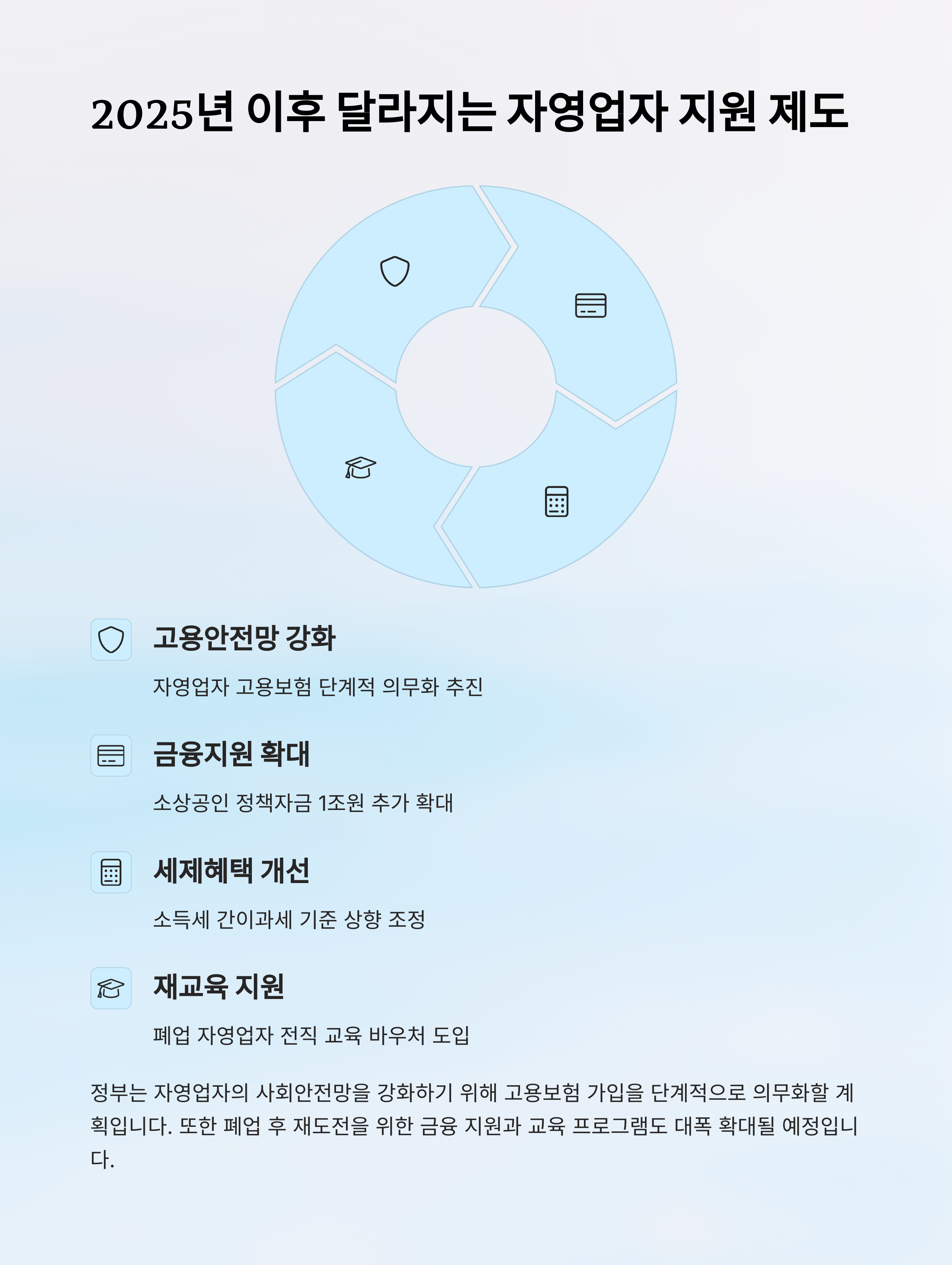 2025년 현재, 자영업자를 둘러싼 정책 환경은 빠르게 변화하고 있어요. 코로나19를 계기로 정책 대출과 고용보험 제도가 대폭 확장되었고, 이제는 회복 단계에 맞춘 제도 정비가 시작되고 있답니다. 특히 '자영업자 맞춤 복지제도'가 강조되면서 다양한 개선안들이 실제로 입법화되고 있어요.