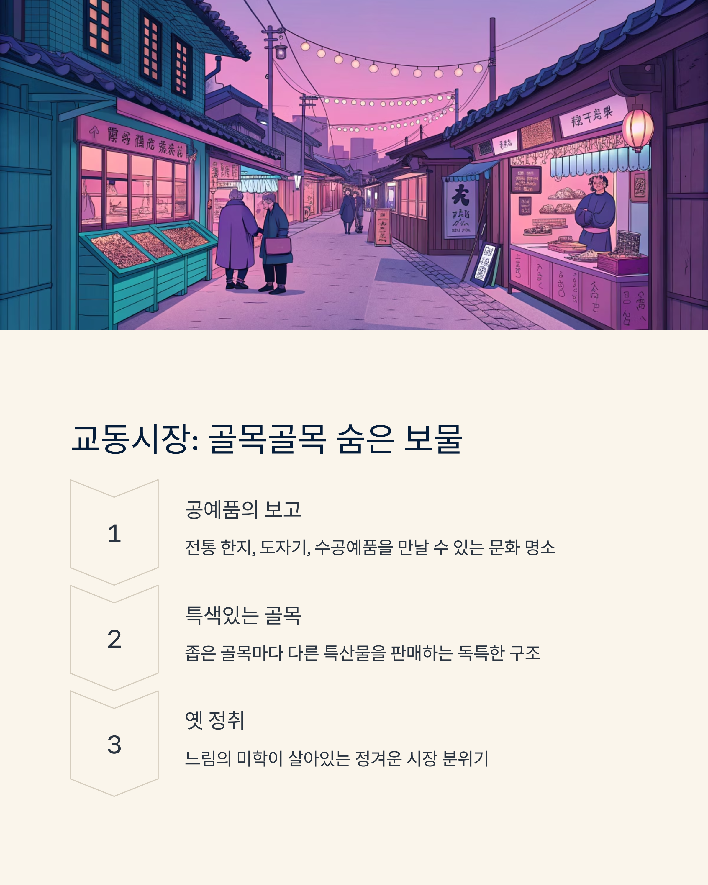 특히 이곳은 골목골목이 살아 있어요. 좁은 골목길 사이를 거닐다 보면 세월의 흔적이 고스란히 느껴지는 가게들이 반겨줘요. 낡은 간판, 손때 묻은 좌판, 그리고 푸근하게 웃는 상인들의 얼굴이 이 시장의 진짜 매력이랍니다.