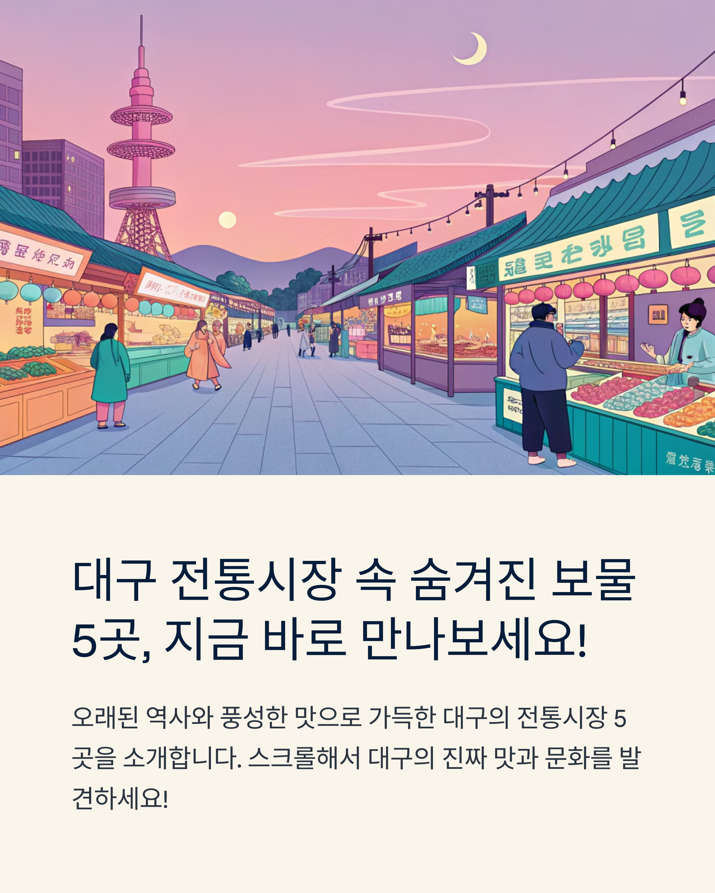 - “지도에도 없는 대구 진짜 맛집, 전통시장에서 찾았어요!” - 소문난 로컬 시장에서 나만의 맛집 리스트를 만들어보세요!