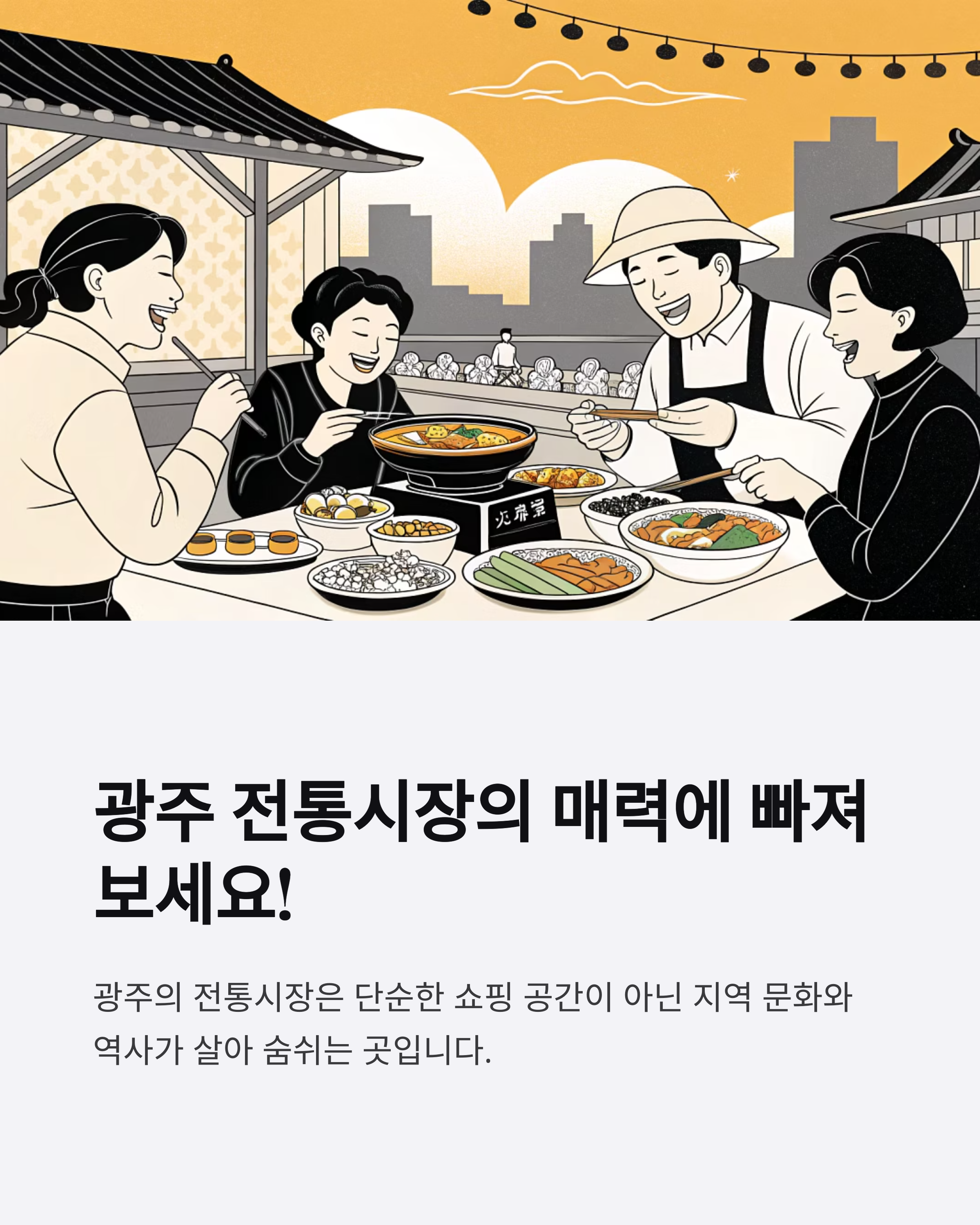 광주광역시는 전라도의 중심 도시로 맛과 전통, 그리고 정이 흐르는 시장문화가 아주 발달해 있어요. 도시의 역사와 함께한 전통시장은 단순히 물건을 사고파는 공간을 넘어서 사람과 사람의 마음이 오가는 삶의 현장이기도 하답니다. 특히나 광주의 전통시장은 음식 맛이 끝내줘서 관광객들도 일부러 시장 투어를 즐기러 오곤 해요.