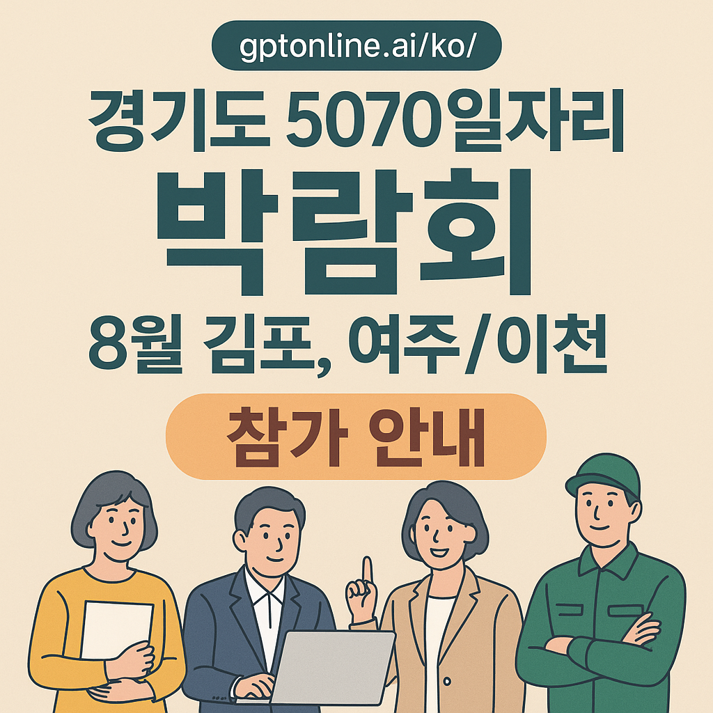 경기도 5070일자리 박람회는 여러 시·군을 순회하며 열리지만, 이번에 꼭 주목해야 할 곳은 바로 김포와 여주/이천이에요! 중장년 구직자를 위한 현장 채용, 직무 체험, 이력서 코칭 등 다양한 프로그램이 준비돼 있으니 놓치지 마세요.