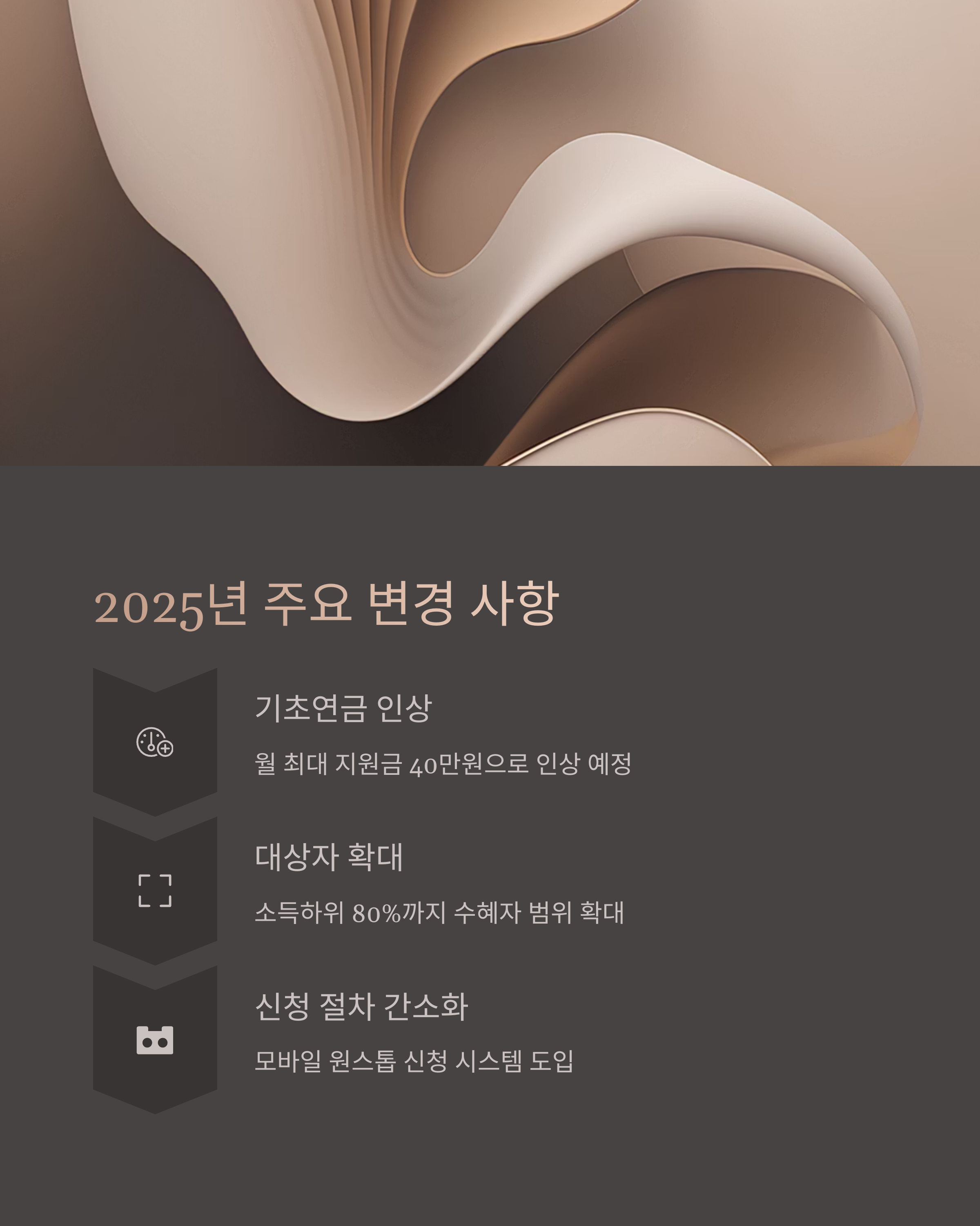 2025년에는 복지 정책에서 몇 가지 중요한 변화가 있었어요. 먼저 기초연금의 최대 지급 금액이 기존 32만 원에서 40만 원으로 확대되었어요. 이는 물가 상승과 노인 복지 수요 증가에 따른 조정이에요.
