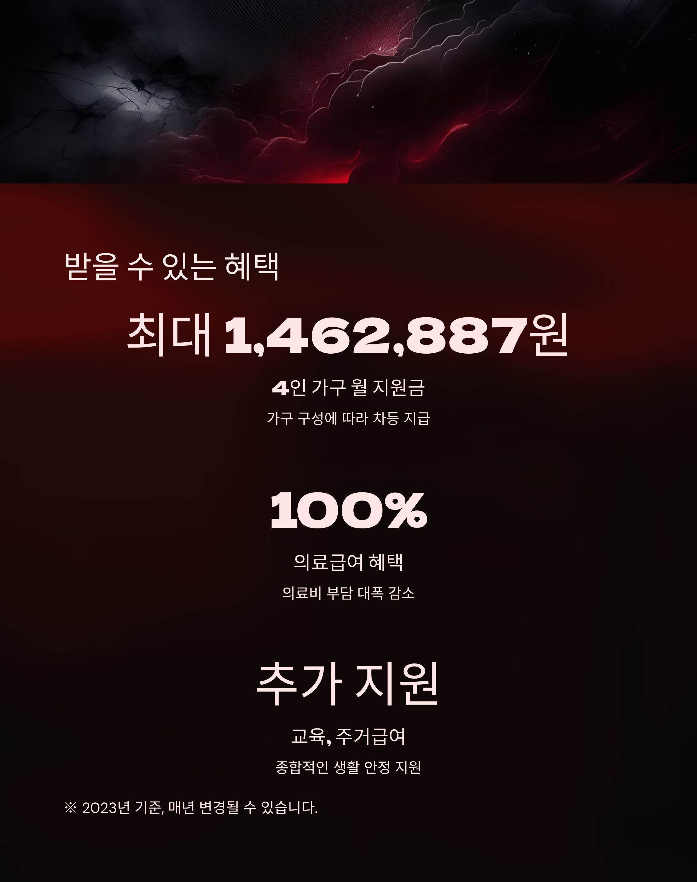 마지막으로, 생계급여 지급 금액이 일부 상향 조정되었어요. 1인 가구 기준 월 64만원 → 66만원 수준으로 올랐고, 가구원 수가 많을수록 인상폭도 더 커졌어요. 이는 물가 상승률을 반영한 조치로, 실제 생활비 부담 완화에 도움이 되고 있어요.