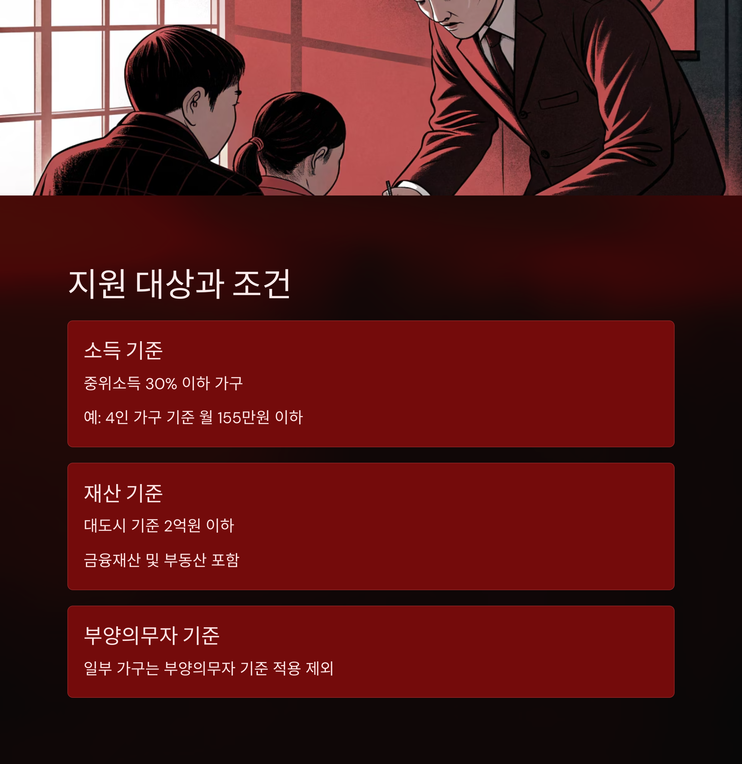 | 소득 기준 | 기준 중위소득 30% 이하 |