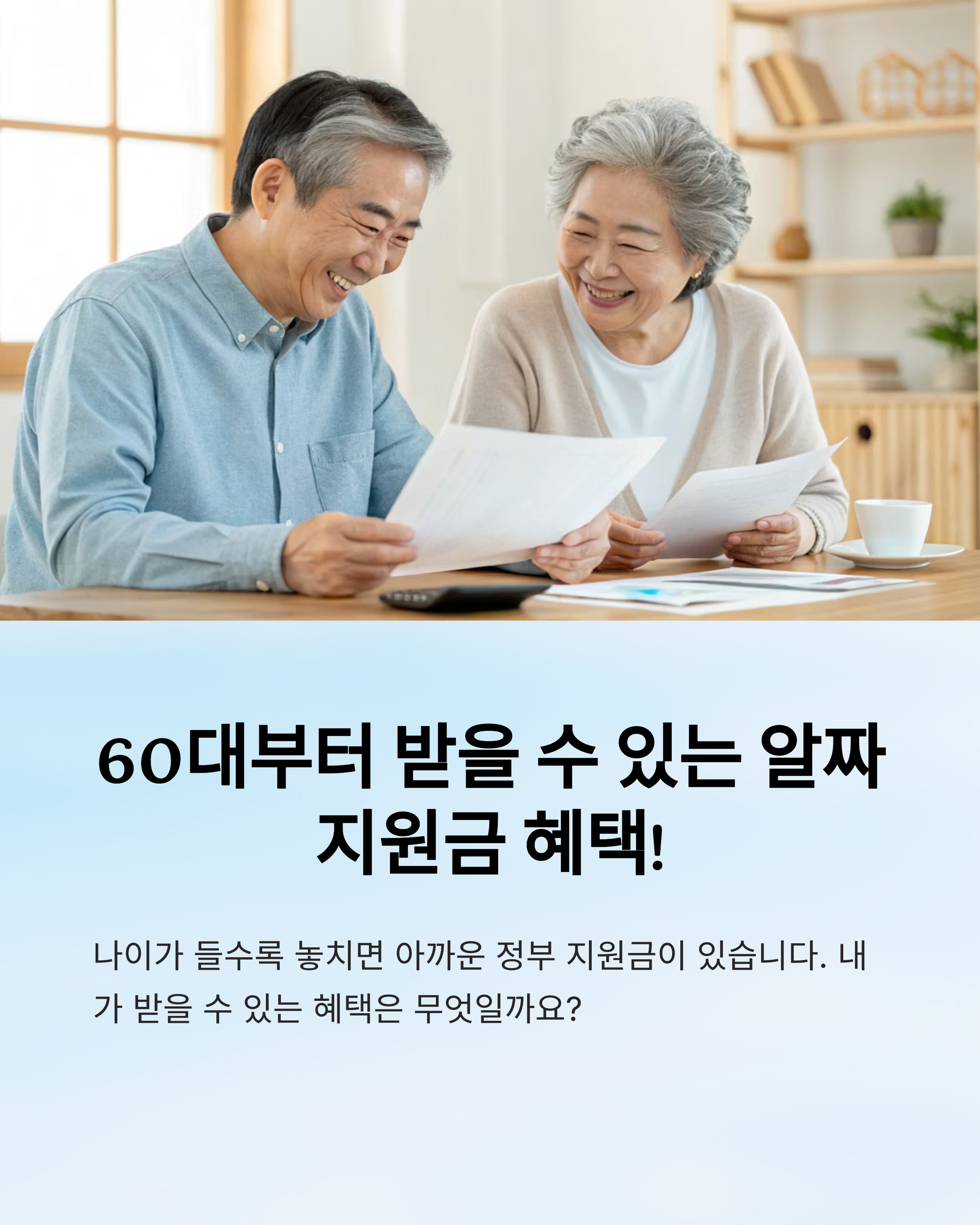 60대는 단순히 은퇴의 시기가 아니라, 제2의 인생을 준비하고 설계하는 중요한 전환점이에요. 정부의 다양한 지원을 잘 활용하면 더 안정된 노후를 맞이할 수 있답니다.