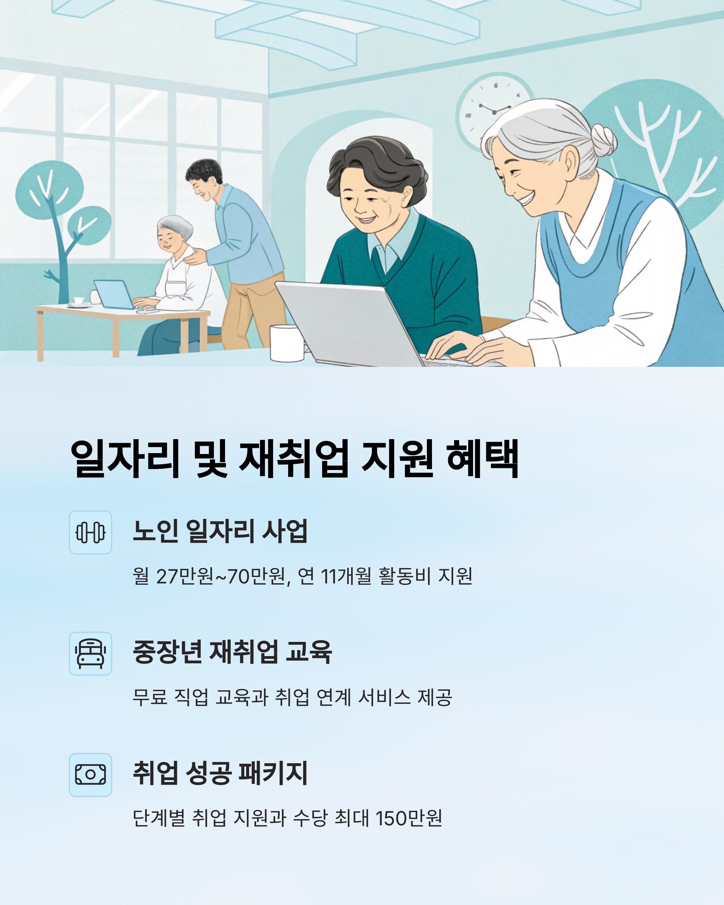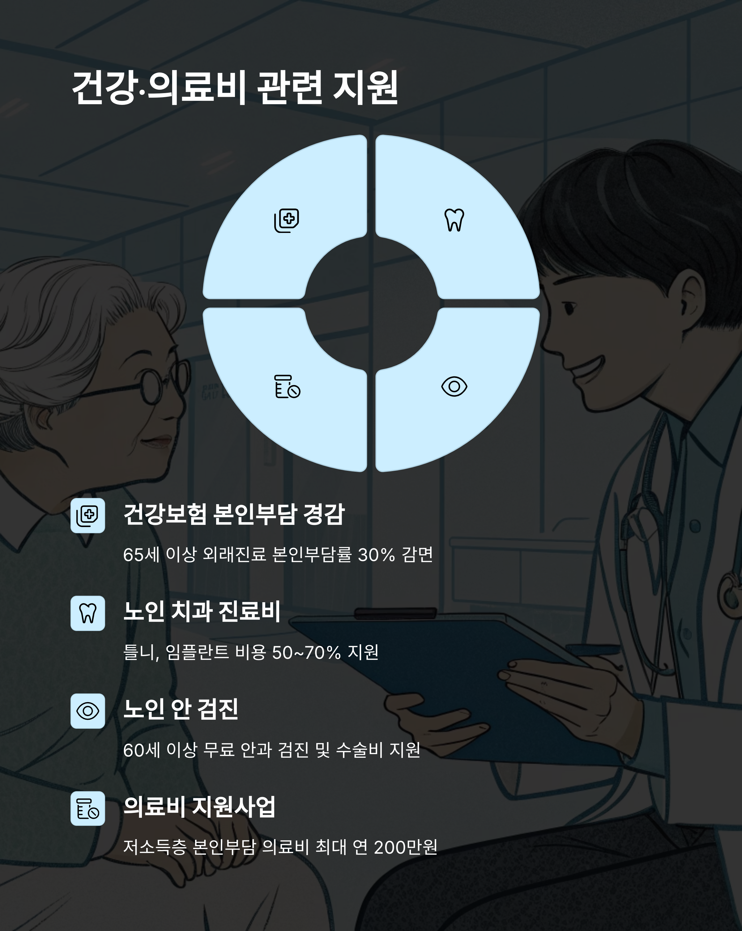 일이 삶의 활력소가 되는 분들께는 이런 지원이 정말 도움이 많이 될 거예요. 다음은 건강과 의료 관련 혜택을 소개할게요. 📍 병원비 절감부터 복지카드 활용까지 다양해요! 🏥