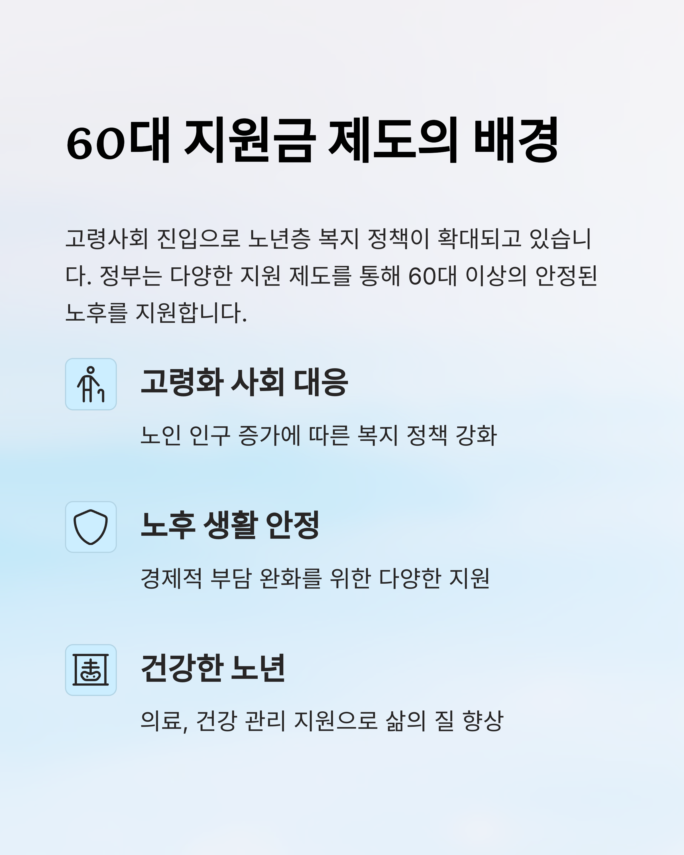 60대를 위한 복지와 지원금 제도는 단순한 금전적 지원을 넘어, 고령 인구 증가에 대응하기 위한 사회적 장치로 시작됐어요. 한국은 이미 초고령 사회에 접어들었고, 정부는 고령층의 안정적인 노후생활을 보장하기 위해 다양한 정책을 마련해왔죠.