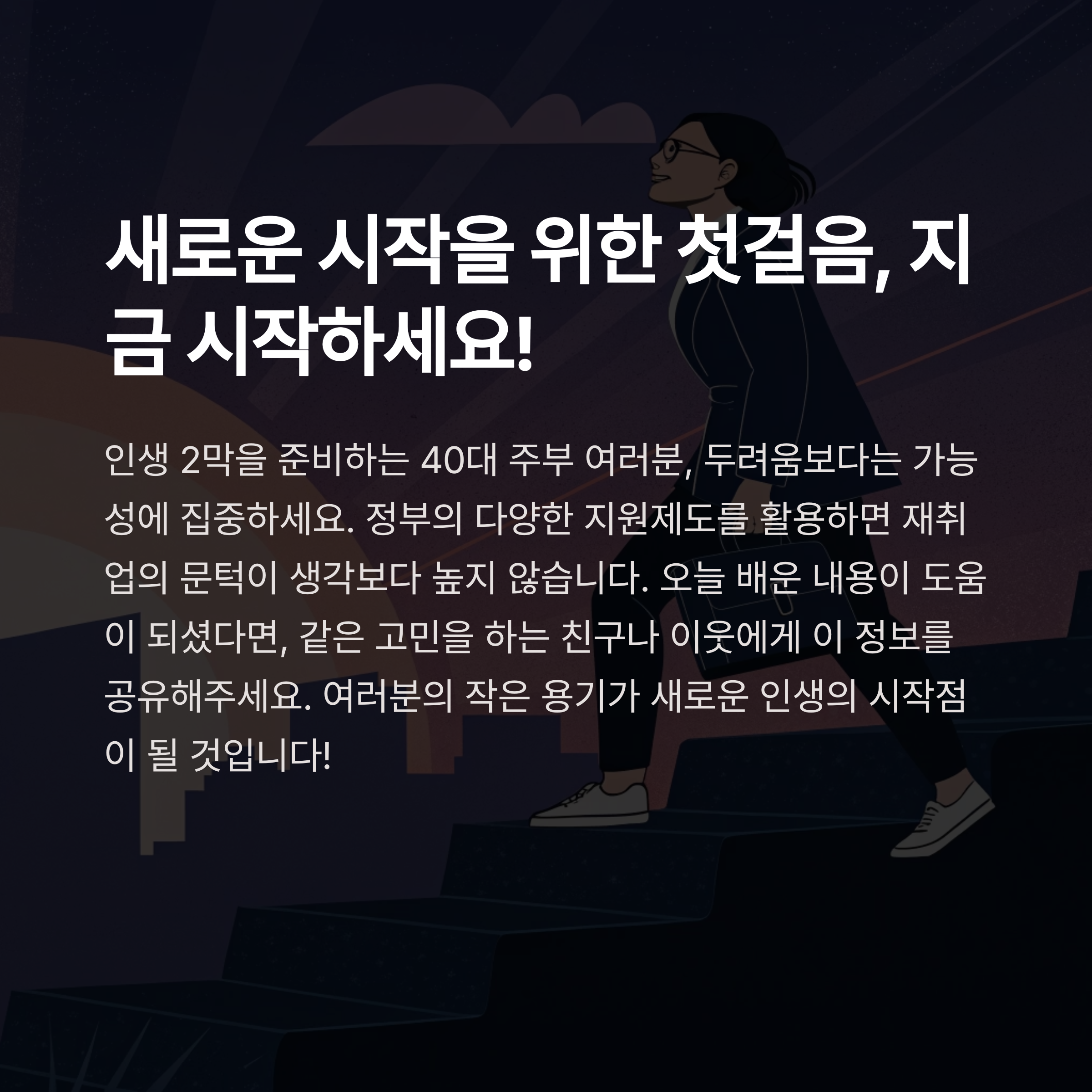 40대 주부라는 이유로 망설이지 마세요. 지금도 많은 여성들이 새롭게 인생의 후반전을 시작하고 있어요.