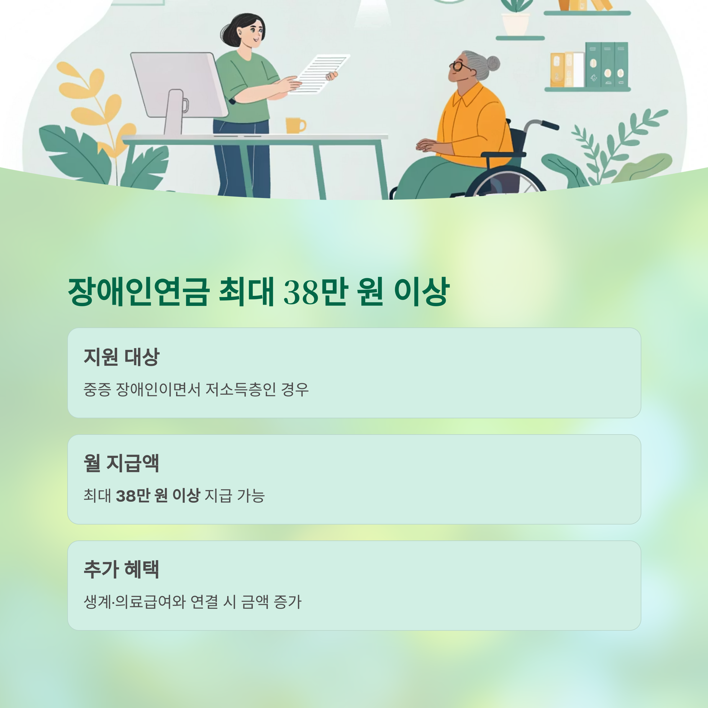 장애인연금 외에도 생계·의료급여와 연결되면 수급금액이 더 커질 수 있으며