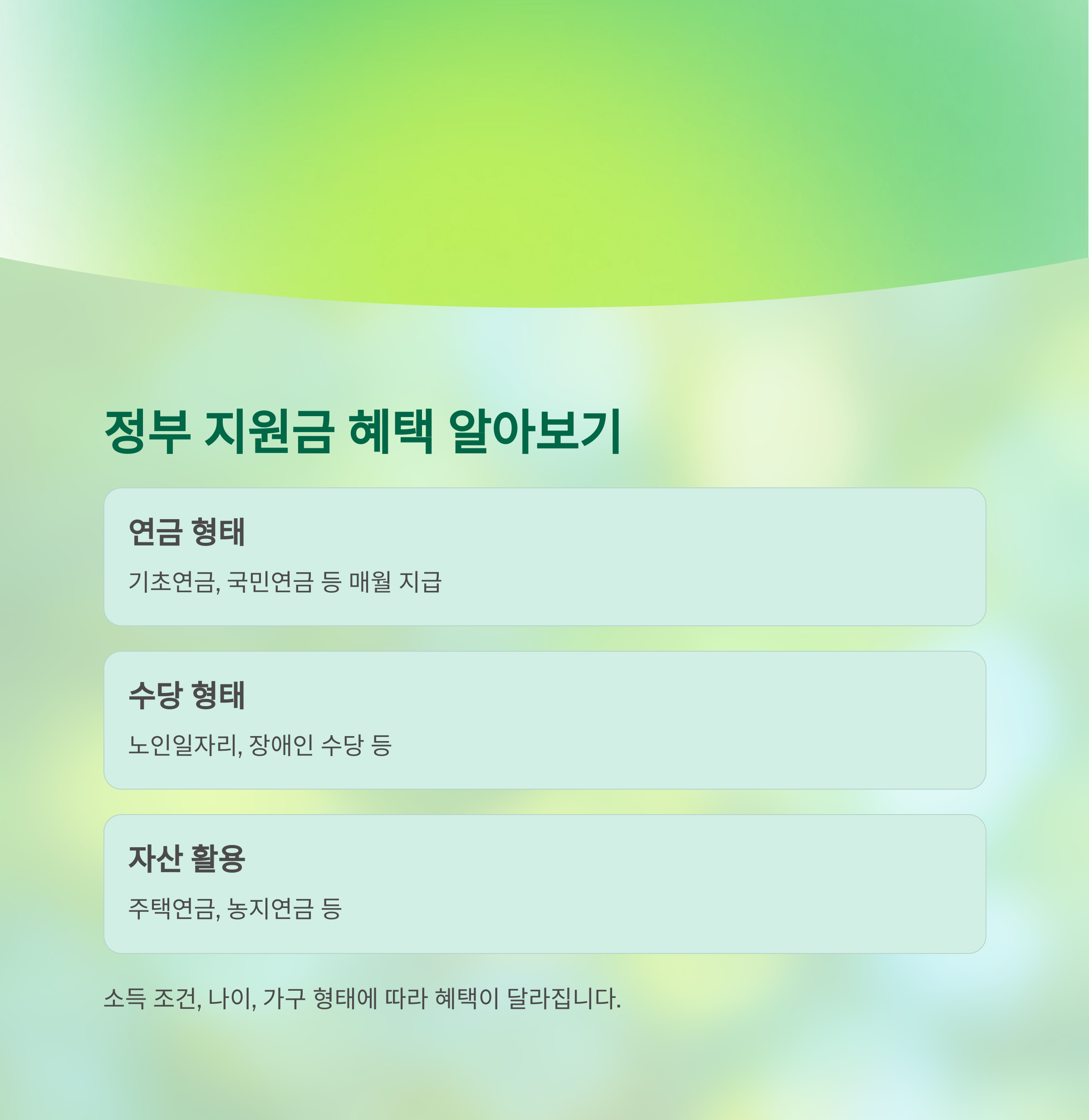 은퇴 후 일정한 소득이 없는 분들을 위해 정부는 연금·수당·지원금 형태로