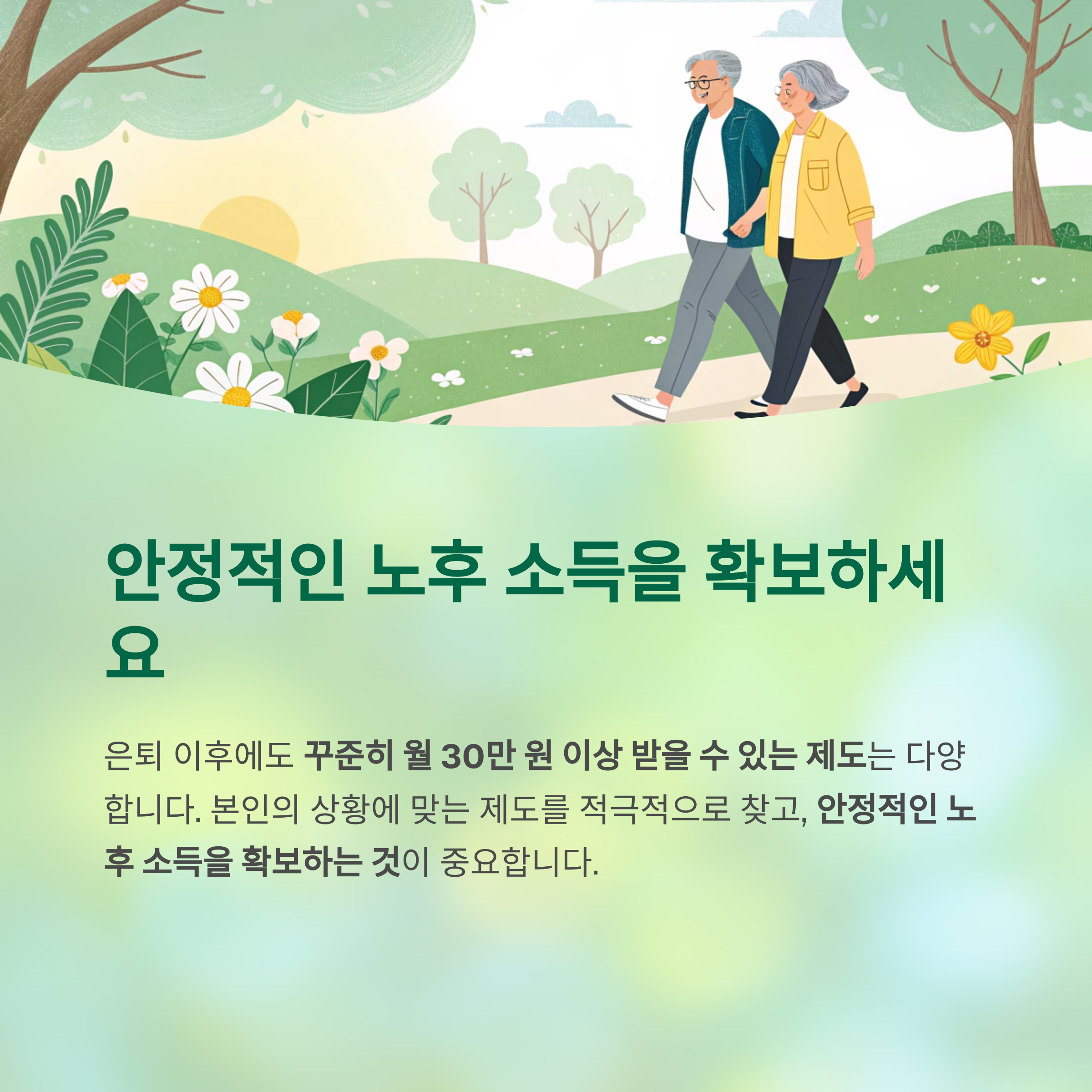 은퇴 이후에도 꾸준히 월 30만 원 이상 받을 수 있는 제도는 다양합니다