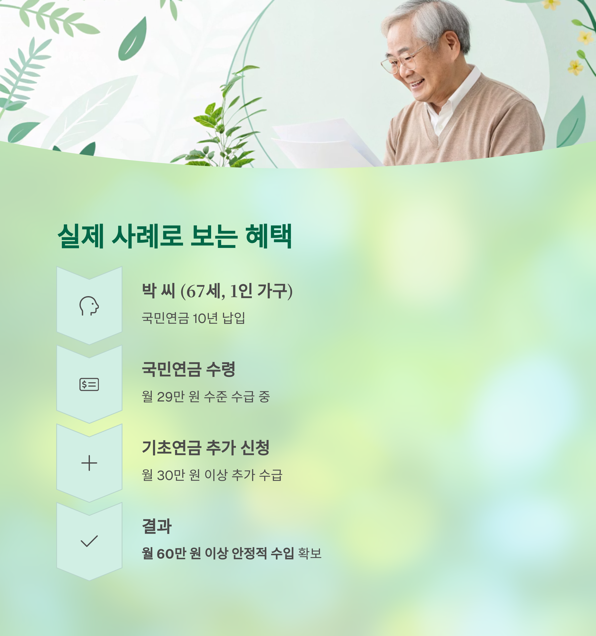 박 씨는 만 67세로, 혼자 살고 있으며 국민연금을 10년간 납입했습니다