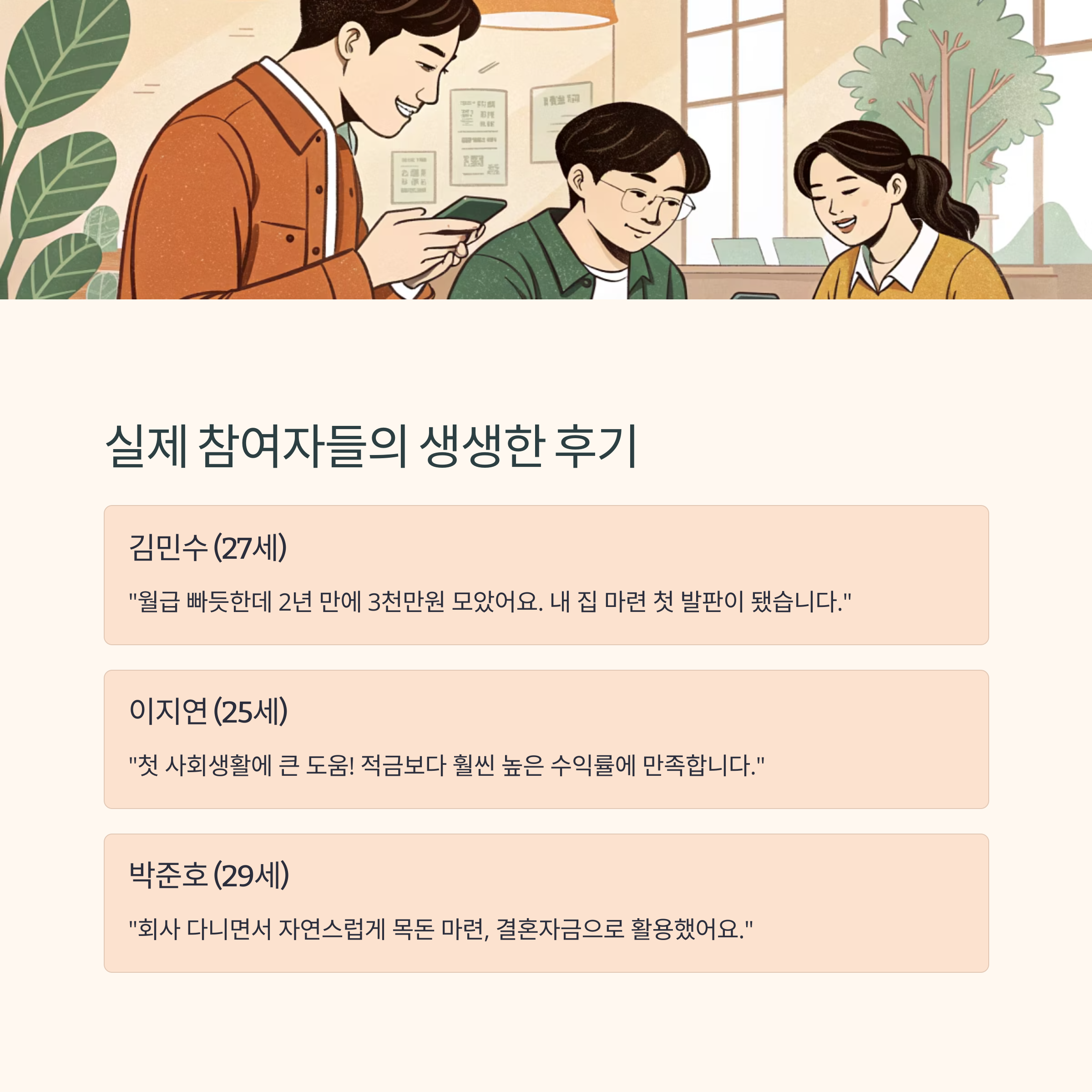 또 다른 사례로는 지방 기업에서 일한 B씨는 3년형에 가입해 3,000만 원을 모았고, 이 돈으로 해외 어학연수를 다녀오기도 했어요. 스스로 계획한 미래의 발판이 된 셈이에요.