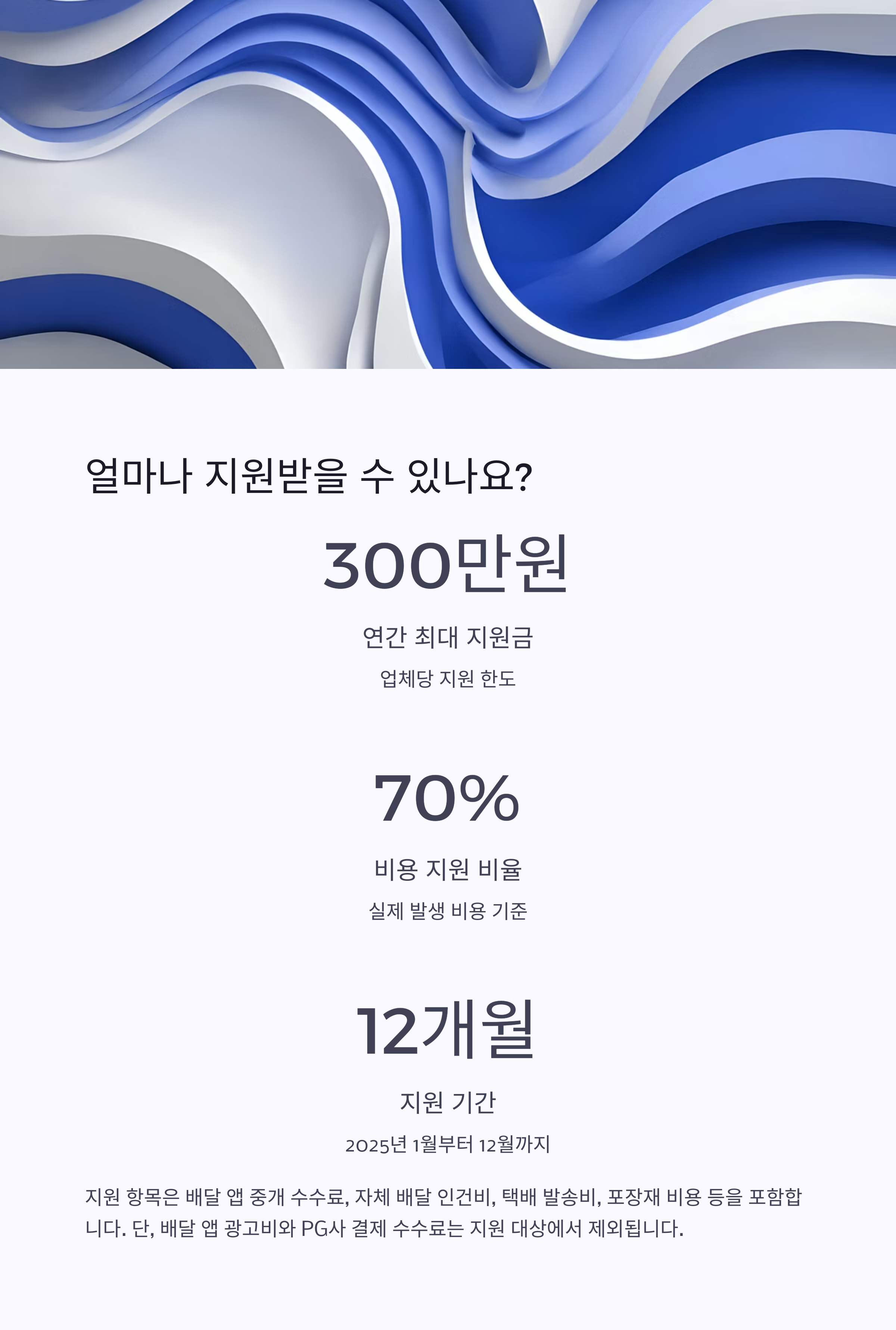 A1. 사업자등록증이 있고 온라인 또는 배달 플랫폼을 사용하는 소상공인이라면 대부분 신청 가능해요.