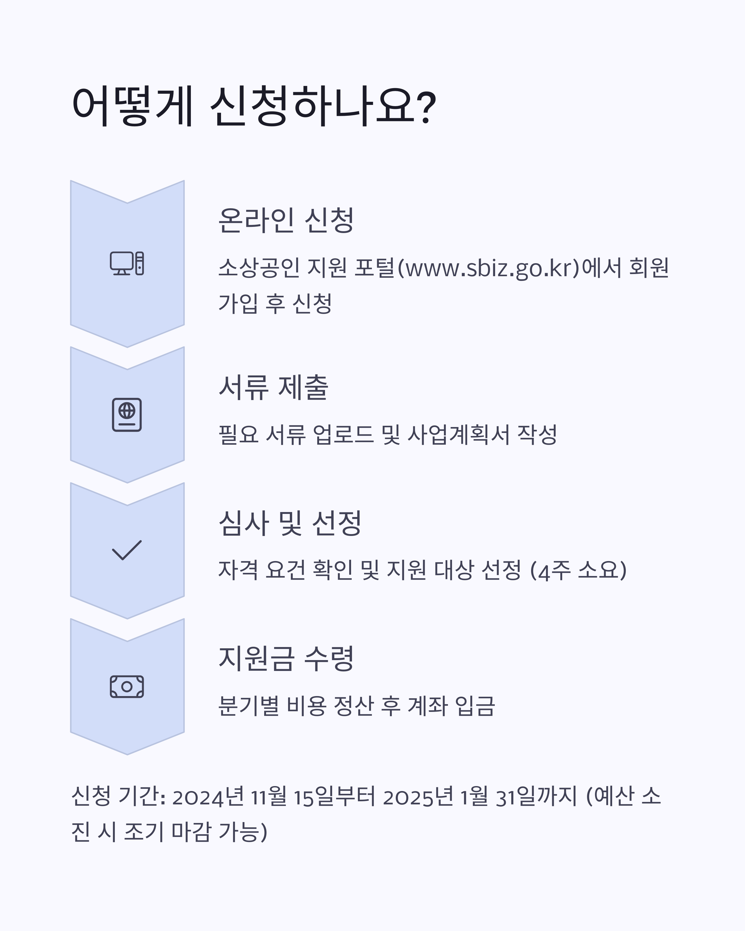 신청은 보통 온라인으로 간편하게 진행할 수 있어요. 소상공인시장진흥공단 홈페이지 또는 각 시·군·구청의 경제과 홈페이지를 통해 접수 링크를 확인할 수 있답니다. 모바일에서도 신청이 가능하니 걱정 마세요!