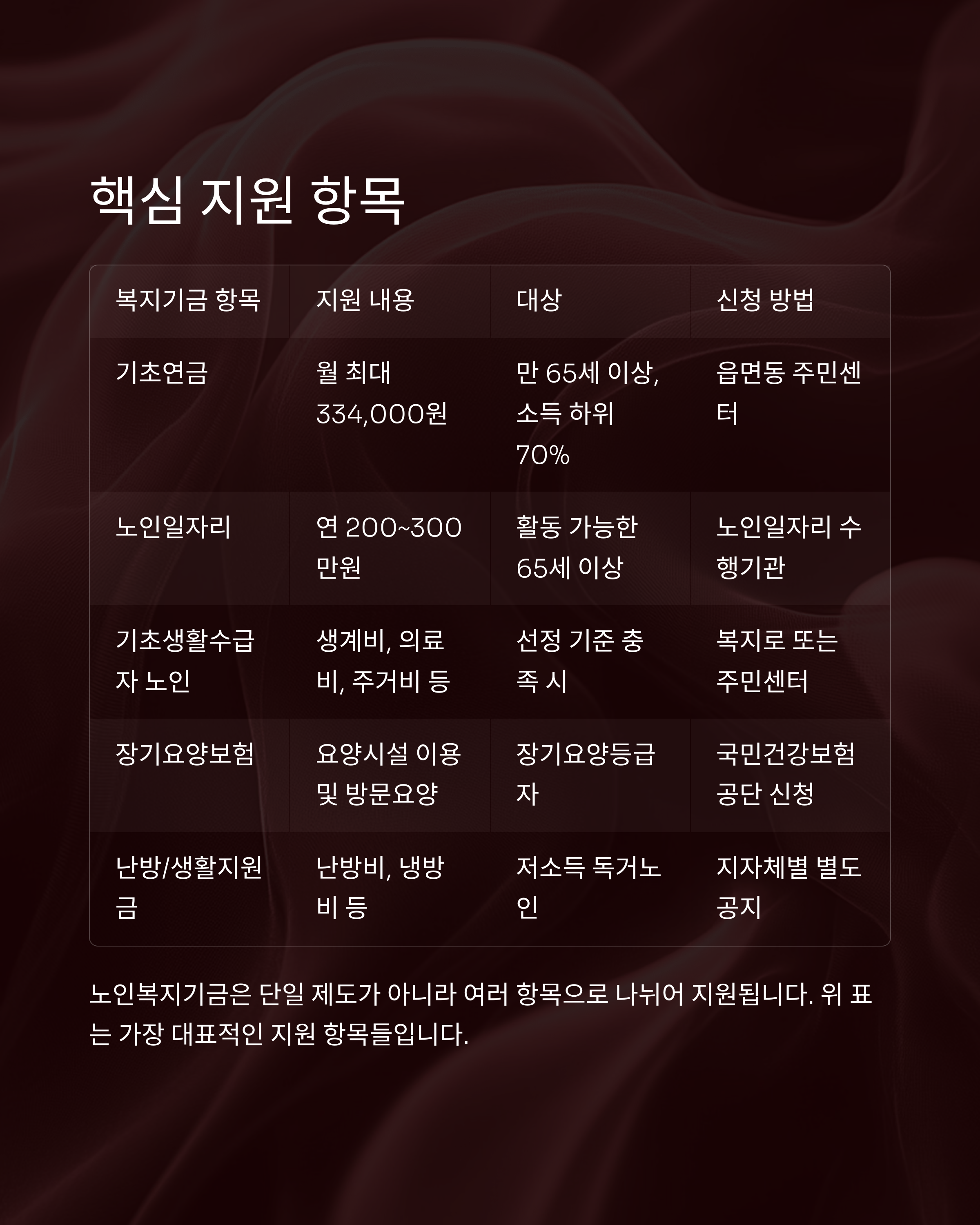 "신청만 하면 지원금! 노인 복지기금 5분 요약 가이드"