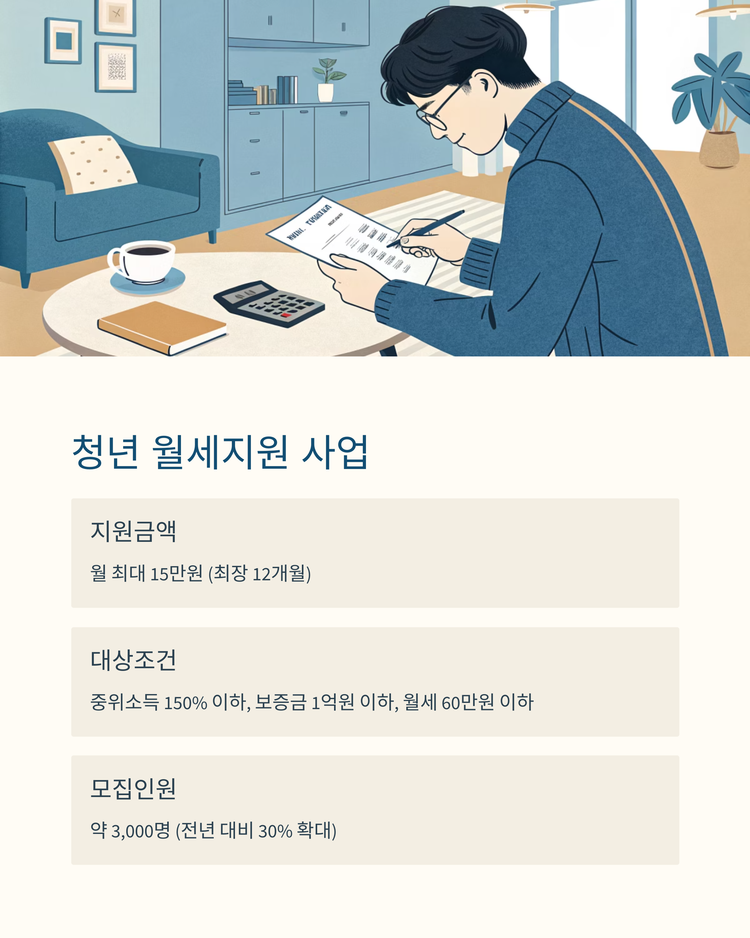 주거 안정이 필요한 청년 대상 월세 최대 15만 원 지원
