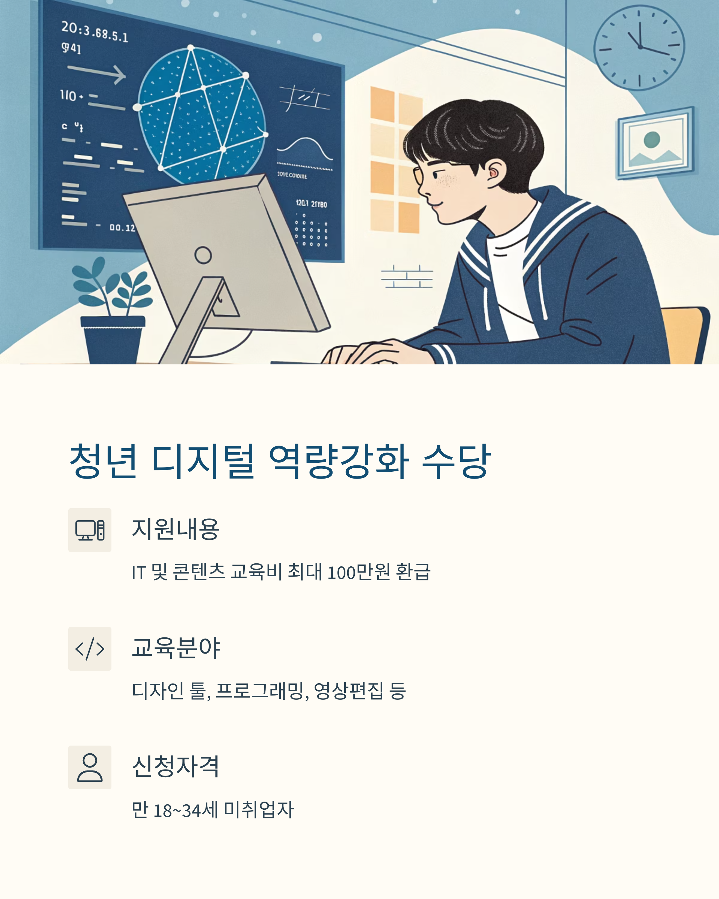 | 디지털 역량강화 바우처 | 만18~34세 미취업 | 교육비 환급 | 최대 100만 원 |