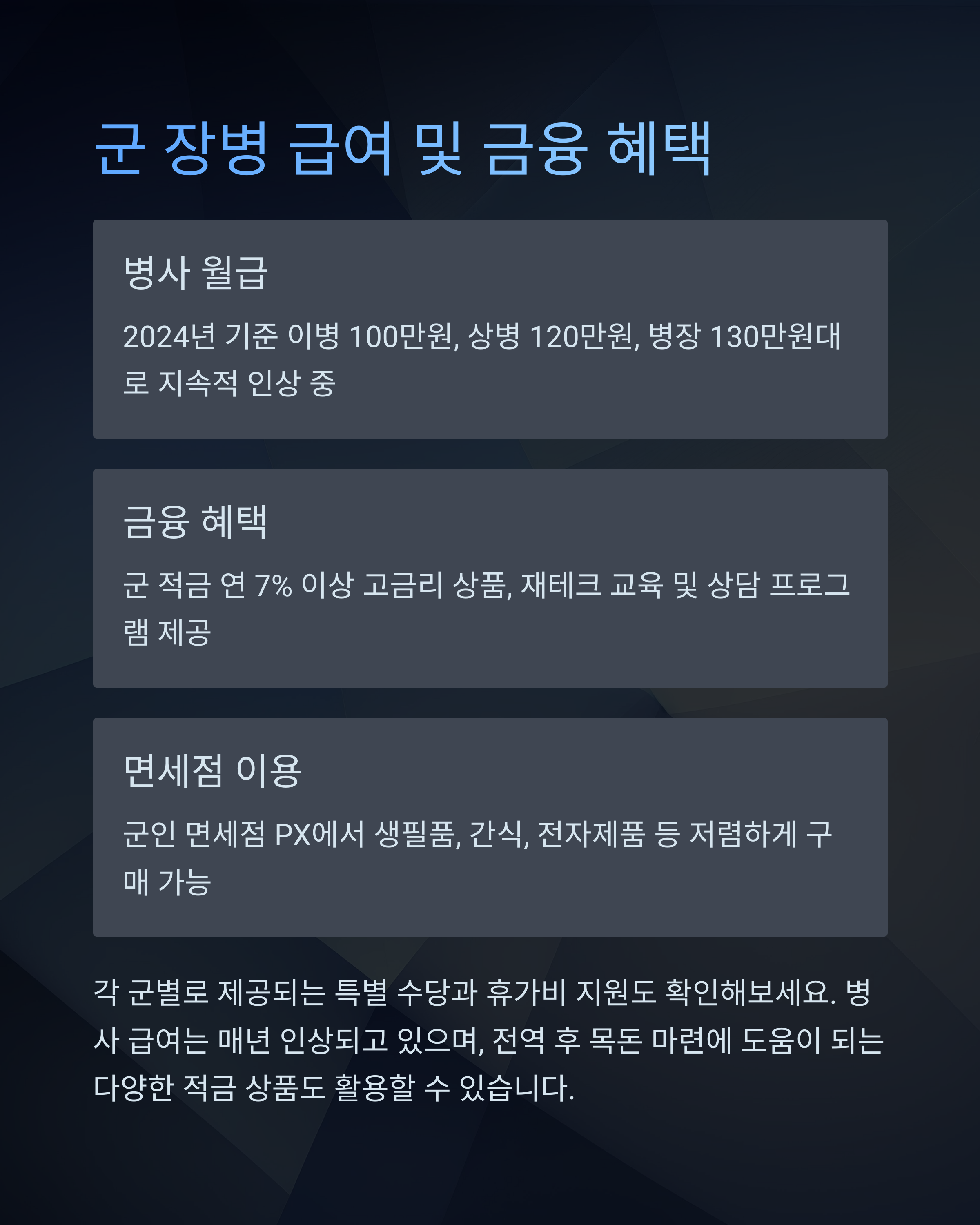 장병 급여 및 금융제도 요약