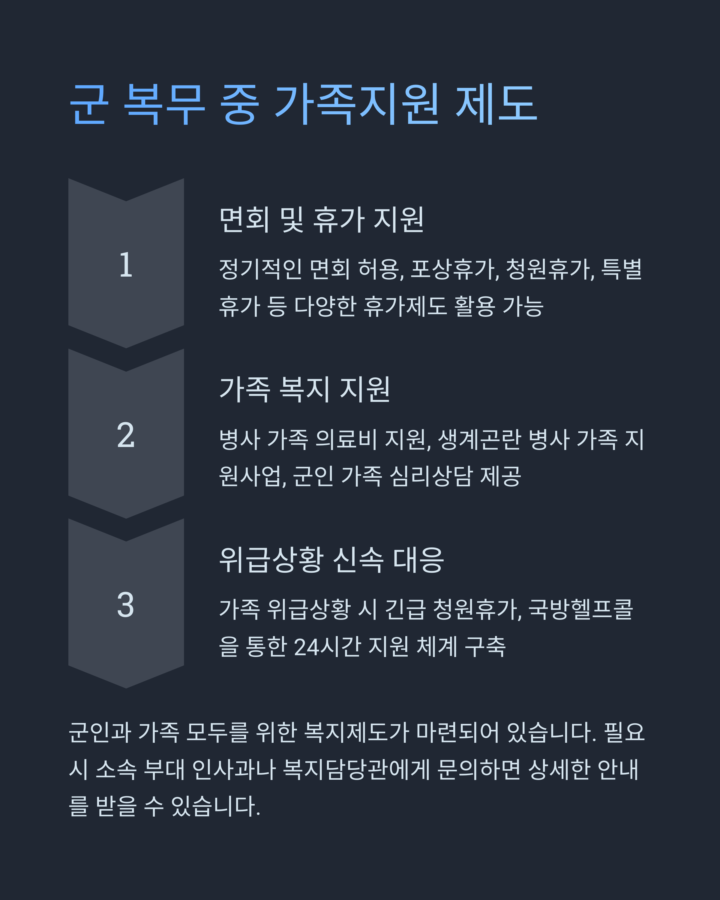 | 장병 가족안심 서비스 | 가족이 병사 정보 확인 가능 | 건강/복무/면회 정보 포함 |