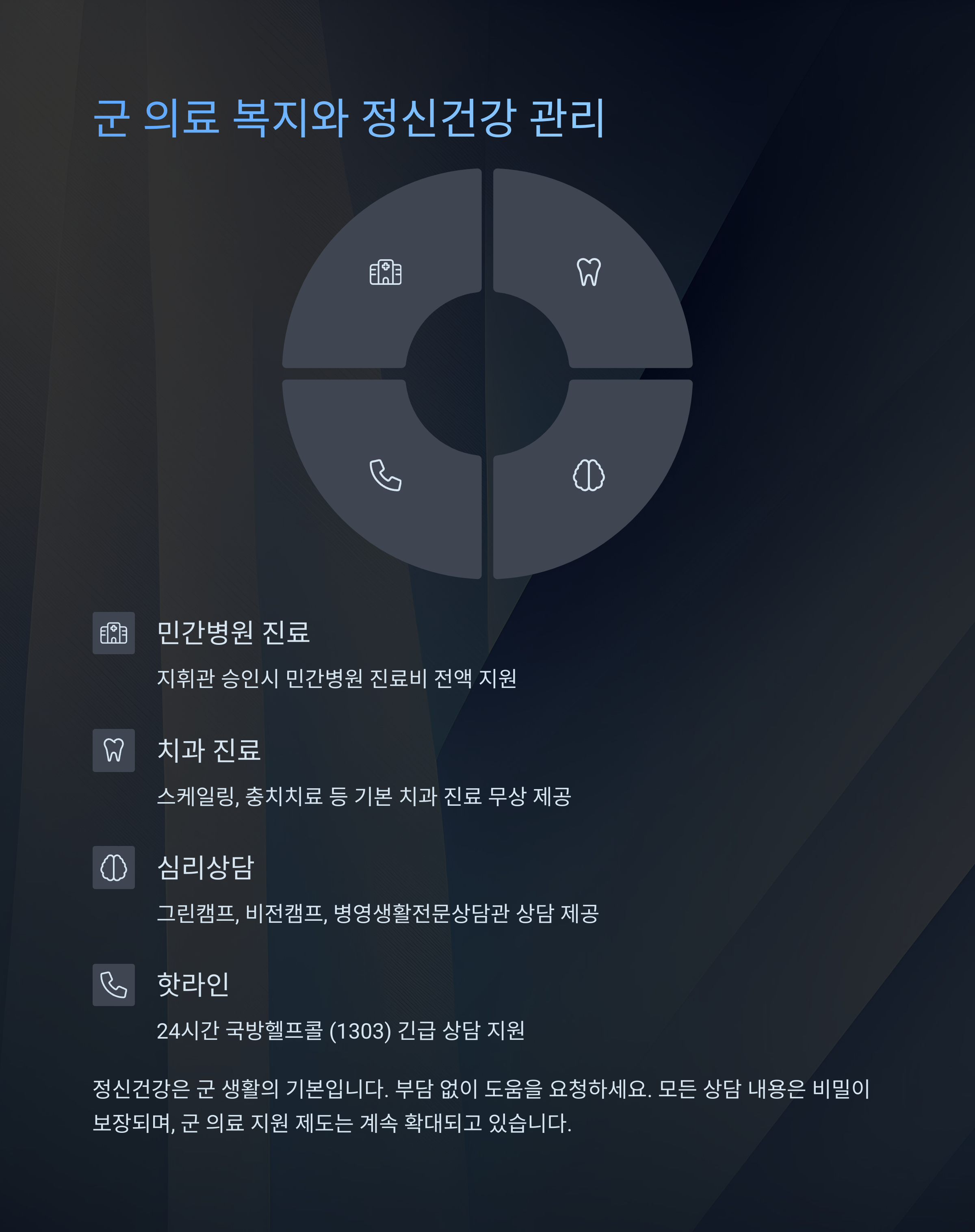 군 의료 및 정신건강 지원 정리